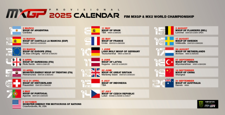 Calendario provisional MXGP 2025 actualizado a continuación: