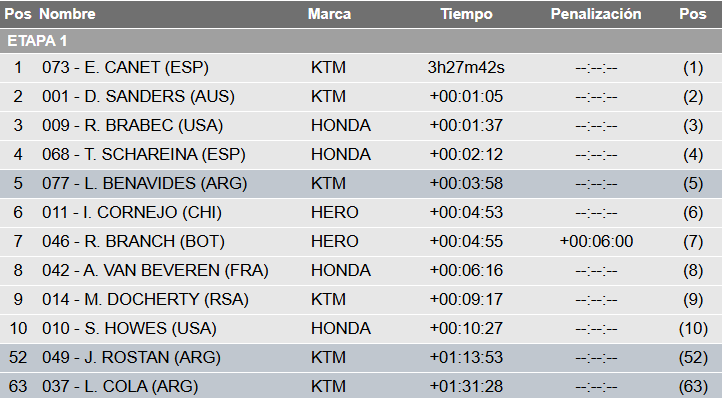 La prueba especial no tuvo sorpresas, y la batalla está planteada con KTM como favorita, Honda en segundo orden pero con mucho talento también, y Hero, la tercera Marc en discordia, por ahora sigue expectante. Canet volvió a ganar, seguido por Daniel Sanders (KTM) y Ricky Brabec (Honda), pero luego vienen Tosha Schareina (Honda), ‘Faster’ Benavides, el chileno Ignacio Cornejo (Hero) y Ross Branch (Hero). El Top 10, lo completan Adrien Van Beveren (Honda), Michael Docherty (KTM) y Skyler Howes (Honda). Los talentosos, siguen todos sin problemas graves y falta mucho.
