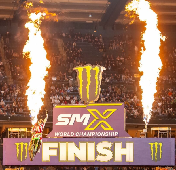 La final del 450SMX comenzó con Jason Anderson tomando el holeshot para Suzuki, seguido de cerca por Sexton, Hunter Lawrence (Honda) y el líder del campeonato, Eli Tomac (KTM). Tras un inicio ajustado, Sexton encontró ritmo, superó a Lawrence y fue a por Anderson, con quien protagonizó un breve intercambio de adelantamientos antes de escaparse con una ventaja sólida. Por detrás, Tomac y Lawrence lograron superar a Anderson, que incluso fue sacado de pista en la maniobra decisiva.