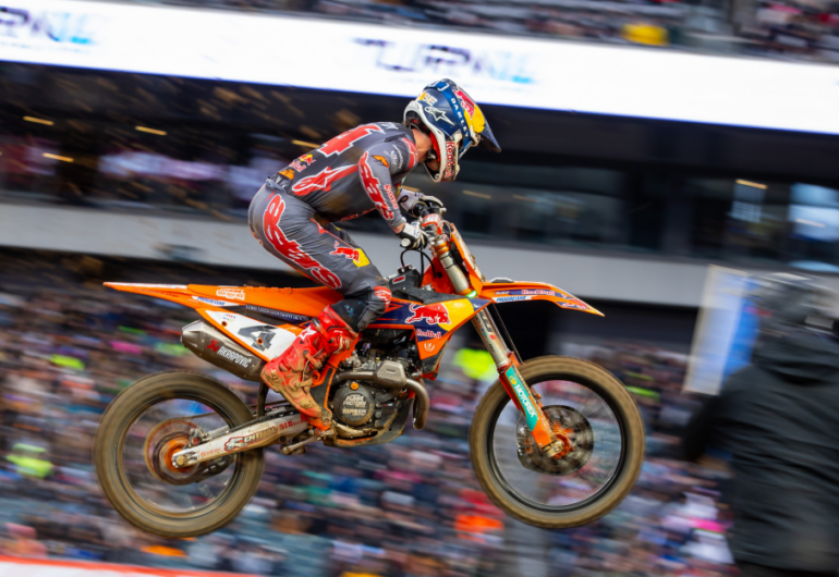 En la 13ª fecha del AMA Supercross, Chase Sexton (KTM) volvió a la cima del campeonato luego de una impresionante remontada en la prueba final de la Clase 450 en Philadelphia. Luego de un enredarse en la primera curva, quedó relegado y superó rivales como pocos pueden, y se llevó la victoria, más la cercanía a la cima del torneo a falta de cuatro carreras.