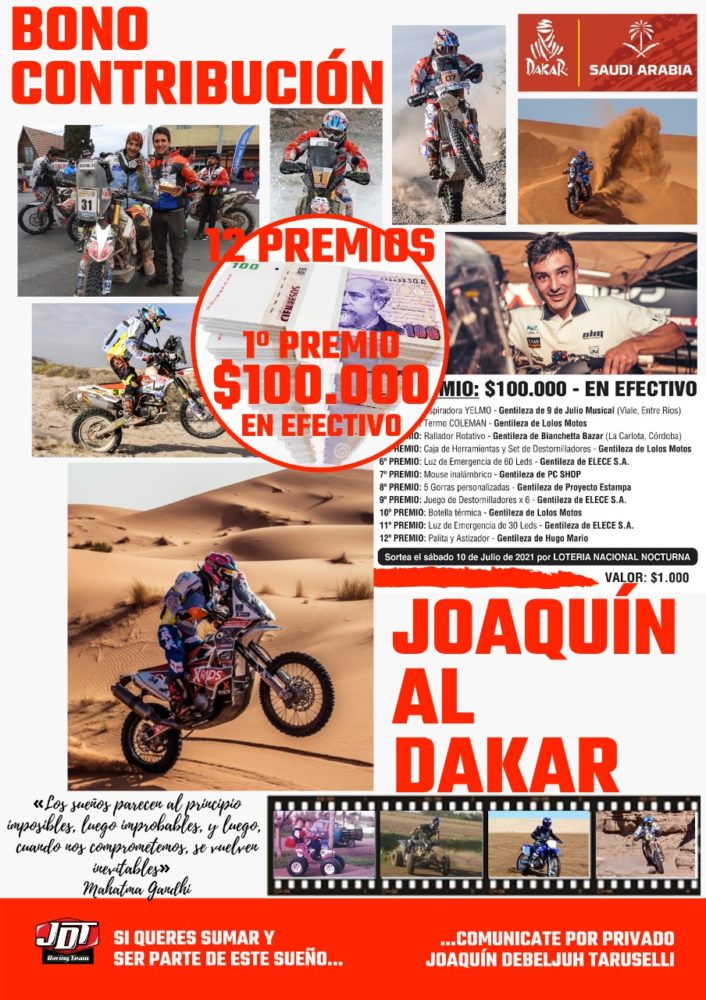 De esta manera, todos podemos colaborar con la concreción de este gran sueño. Y cerró Joaquín: “Mi sueño, se ha convertido en un sueño compartido, porque detrás de mi sueño, está mi familia, mis amigos, el pueblo donde vivo y muchísima gente que me acompaña para no estar solo arriba de la moto. Por eso entreno todos los días, para eso me estoy preparando, para completar la carrera más difícil del mundo y cumplir este sueño: ser parte del Dakar 2022”.