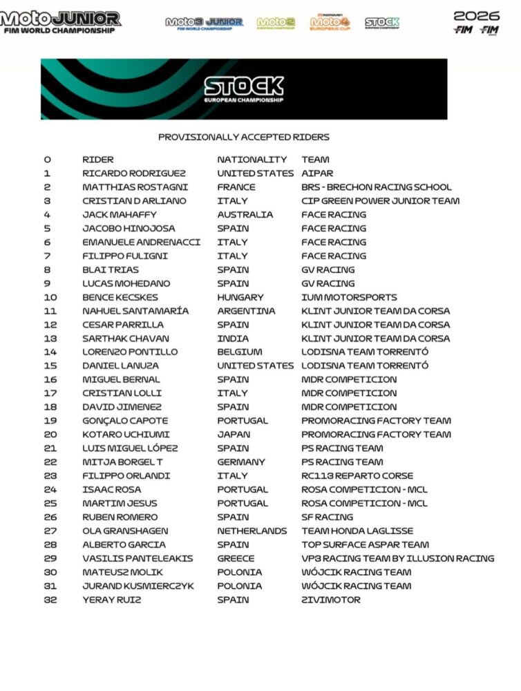 El piloto de Alem, Misiones; Nahuel Santamaria, fue confirmado en el Entry List del Campeonato del Mundo de Stock600 del FIM Moto Junior World Championship. Será el único piloto de nuestro país en parrilla para las cuatro categorías mundialistas (Moto4 European Talent, Moto3 y Moto2).