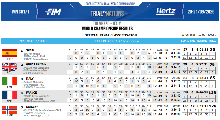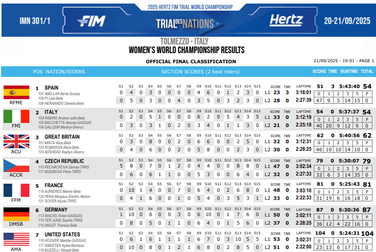 Tolmezzo, Italia, fue sede de la edición 2025 del FIM Trial de las Naciones, donde España no dejó ver sorpresas, y tanto en hombres como en mujeres, se adjudicaron el puesto central en el podio. Toni Bou, Jaime Busto y Gabriel Marcelli fueron demasiado para el resto, mientras que Berta Abellán, Daniela Hernando y Laia Pi, hicieron lo propio entre las damas.