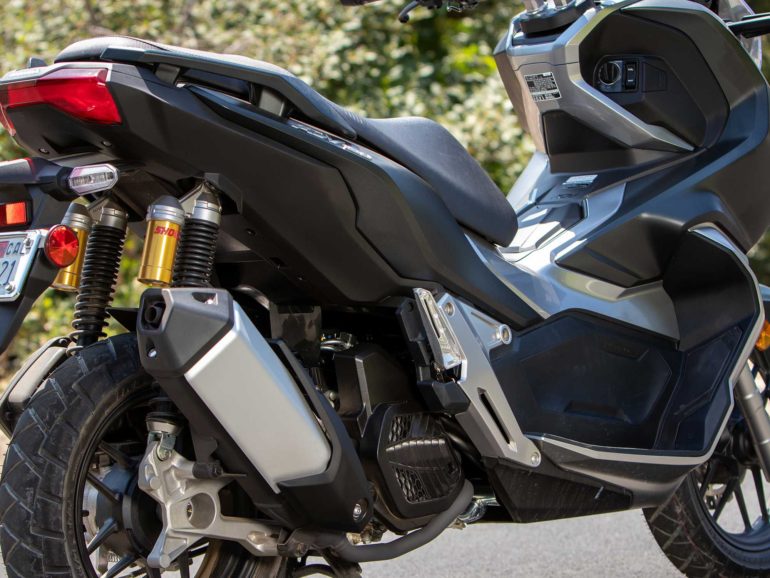 El resultado final es una mezcla entre un PCX150 y una Africa Twin, con la idea de hacer más divertido aún al PCX150. Además de los evidentes cambios estéticos, el ADV150 se diferencia del PCX por una suspensión Showa de mayor recorrido, un disco delantero de mayor tamaño (240 mm) con ABS y cubiertas más aventureras. Atrás mantiene un freno de tambor sin ABS.