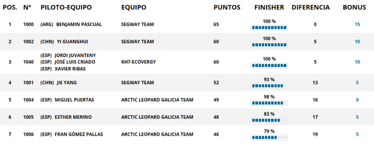 En Challenger, una cuarta tripulación que defiende a la Argentina se quedó con el triunfo: los campeones Nicolás Cavigliasso y Valentina Pertegarini (Taurus) dominaron en un final ajustado, y subieron hasta el tercer puesto de la general, a menos de siete minutos del líder, el local Yasir Seaidan (Taurus). El Top 5 de la general tiene al navegante Bruno Jacomy (Taurus junto a Lucas del Río) en cuarto puesto y a David Zille y Sebastián Cesana (Taurus) quintos, todos dentro de la hora de distancia.