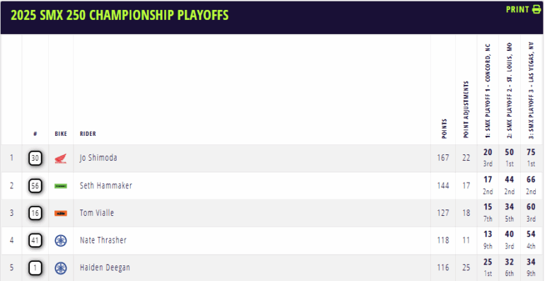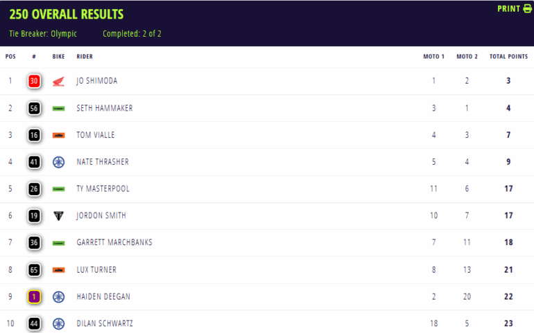 El triunfo de Shimoda fue un reflejo de su determinación, especialmente en una carrera marcada por un contacto con Haiden Deegan (Yamaha) que dejó a este último fuera de combate con una clavícula rota. A pesar de la tensión, Shimoda mantuvo la compostura, asegurando su victoria frente a Seth Hammaker (Kawasaki), que terminó segundo, y Tom Vialle (KTM), en tercer lugar. La gesta de Shimoda no solo es un logro personal, sino un hito para el motocross japonés.