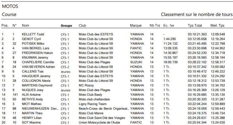 Por cuarto año consecutivo, Todd Kellet se quedó con el triunfo general en el Enduropale du Touquet Pas-de-Calais, y su estado de forma no merma ni un pelo. Con el ‘1’ en su Yamaha, cambió de colores pero no de mañas, y cumplió con sus expectativas de favorito. De este modo, el inglés se adjudicó el Campeonato Mundial FIM de Carreras de Arena.