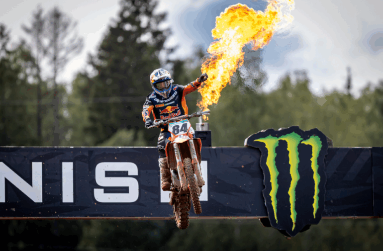 Jeffrey Herlings dominó el Gran Premio de Letonia de MXGP, en Kegums, demostrando una vez más todo su talento en un año que comenzó muy duro para él. KTM no solo festejó en la máxima divisional mundial del Motocross, sino que también lo hizo en MX2 de la mano de Sacha Coenen.