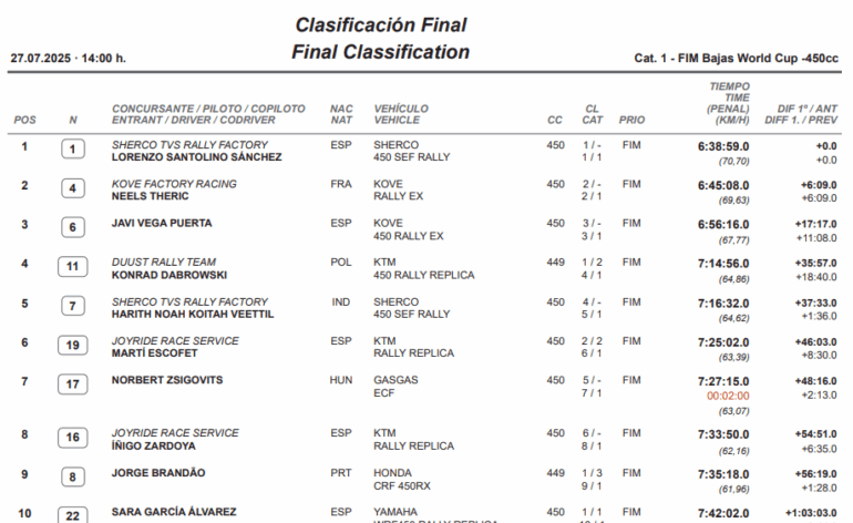 La Baja España Aragón 2025 concluyó con gran éxito, y un triunfo local importante para Lorenzo Santolino (Sherco), quien ganó por primera vez esta prestigiosa carrera. Lideró cada una de las pruebas especiales, sin contemplaciones.