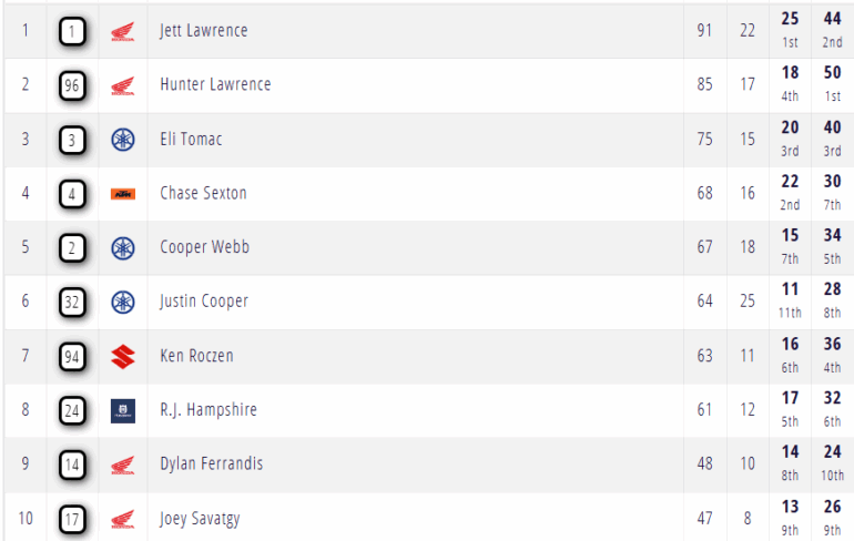 El SuperMotocross de AMA tuvo a Hunter Lawrence (Honda) venciendo en un evento muy disputado en Saint Louis, y los principales candidatos a ganar el ‘Play Off’ son él y su hermano Jett, quien por ahora lidera las acciones pero con apenas seis puntos de ventaja sobre Hunter.