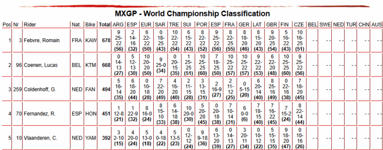 En general, la ronda de MXGP en Loket fue una muestra de habilidad, estrategia y resistencia. Coenen consolidó su posición como un contendiente serio, mientras que Febvre parece sumar presión, aunque no lo demuestre. Quedan seis competencias y la tendencia tiene que cambiar si es que el francés quiere evitar perder el título frente al belga.