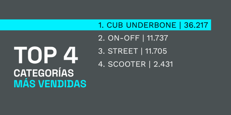 Respecto a las categorías, las CUB (también conocidas como Underbone) lideraron cómodamente el ranking con 36.217 unidades patentadas, consolidándose como la opción preferida para la movilidad urbana. En un segundo y tercer lugar muy disputado se ubicaron las categorías ON/OFF (11.737 unidades) y Street (11.705 unidades), demostrando su popularidad y versatilidad. Los Scooters, por su parte, registraron 2.431 patentamientos.