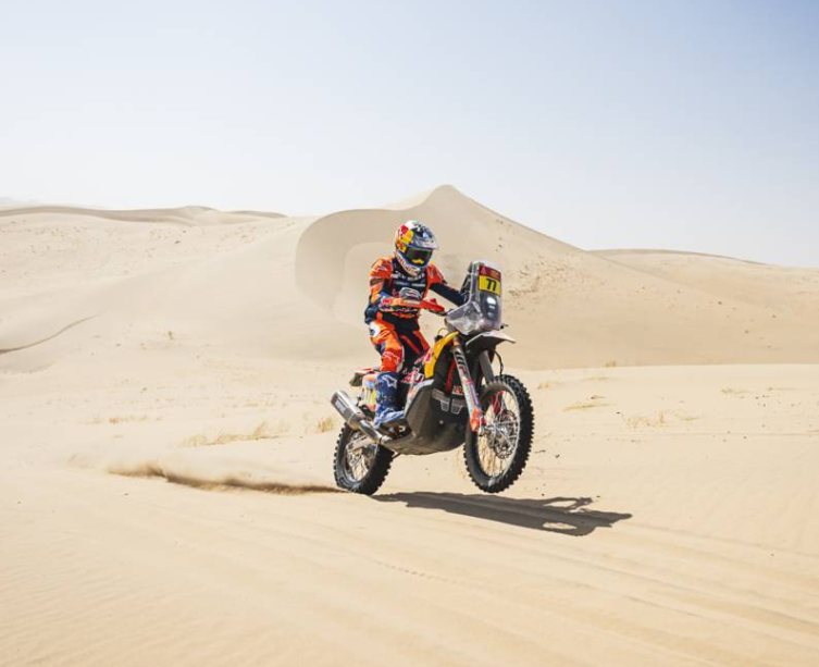 Kevin Benavides (KTM), sigue sin poder enderezar el rumbo pero completó la jornada, esperando poder empezar a remontar. Está a casi una hora y cuarto de Sanders, y habrá que seguirlo de cerca para ver si encuentra el ritmo que lo haga volver a ganar etapas.