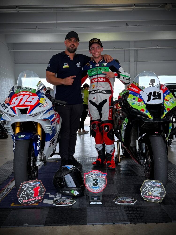 Por su parte Aguilar destacó los rendimientos de La Gringa y La Correntina, como bautizó a sus dos motos de competición. “Logramos el 1er puesto en la categoría Superstock y el 2do puesto en la categoría SBK. Los que conocen de este deporte saben lo difícil que es lograr una moto competitiva, soy un afortunado de tener dos y no es para nada casualidad. Hay mucho trabajo detrás de esto y seguiré trabajando para luchar con los mejores en el campeonato nacional Moto América”, señaló Ema. “Quiero agradecer a todos mis patrocinadores, familia y amigos que hacen el aguante y una mención especial para Ricky que estuvo firme apoyándome todo el finde”, cerró.