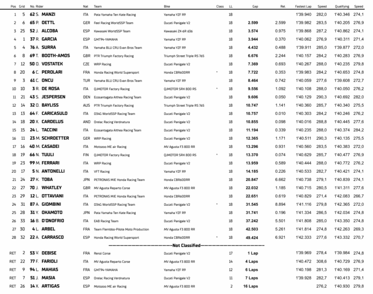 Con la confirmación de Manzi como campeón, también fue anunciado su salto a WorldSBK en 2026 con el GYTR GRT Yamaha WorldSBK Team, donde será compañero de Remy Gardner.