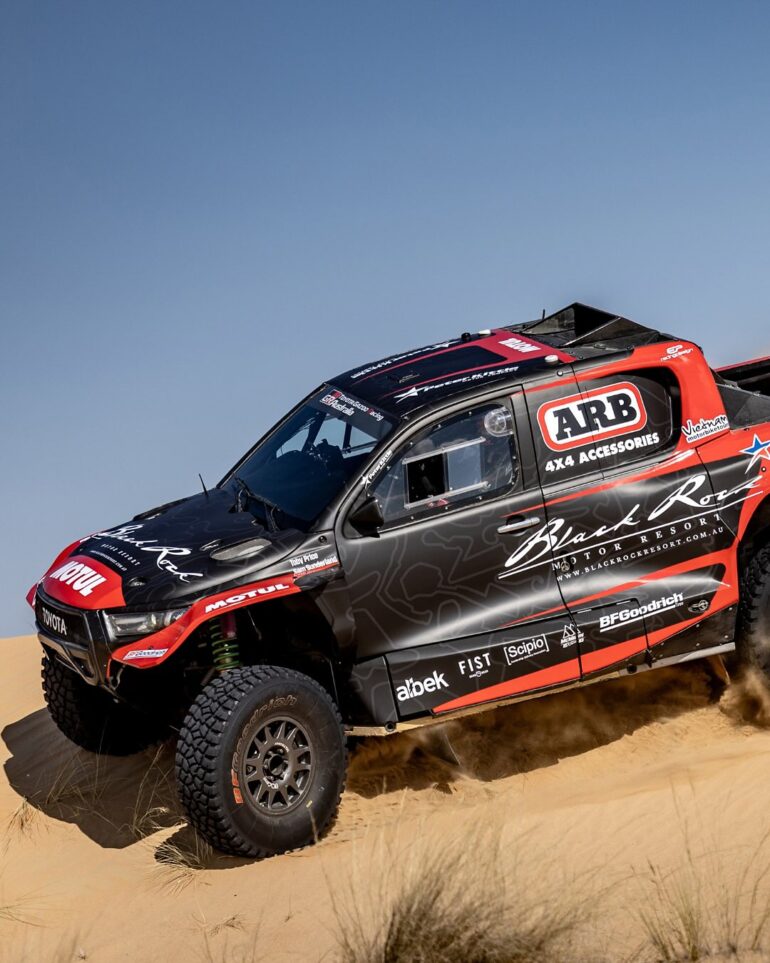 Dos de los grandes ganadores del Dakar en Motos, unen fuerzas para disputar el Dakar 2025 en Autos, con una Toyota Hilux T1+. Lejos de empezar con bajas prestaciones, Toby Price y Sam Sunderland guiarán un auto de la principal divisional para medirse contra los grandes campeones de la especialidad.