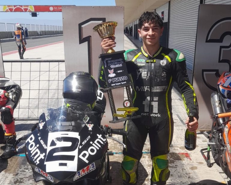 El actual campeón de la Junior Cup Benjamín Peralta metió otro 1 en el 250. El piloto de San Carlos Centro ganó en la Final. Para Peralta fue el 3° triunfo de 2024 y el 6° en el asfalto dentro del SBK Argentino.