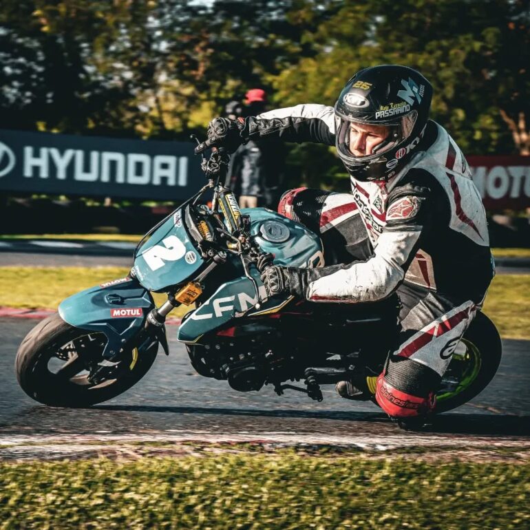 Agustín y Mauro Passarino fueron presentados éste viernes 21 de marzo como pilotos oficiales de CF Moto Paraguay. Los pilotos de Resistencia, Chaco; correrán la Temporada 2025 del Campeonato Nacional de Velocidad Paraguayo (AMVP). Agustín, sobrino de Mauro, debutó en 2024 y en su primera experiencia internacional logró podios con triunfos incluidos en la Categoría Light. En tanto Mauro vuelve con los objetivos renovados en la División 125 Pro tras haber sido ya campeon en 2023 de la Categoría principal.