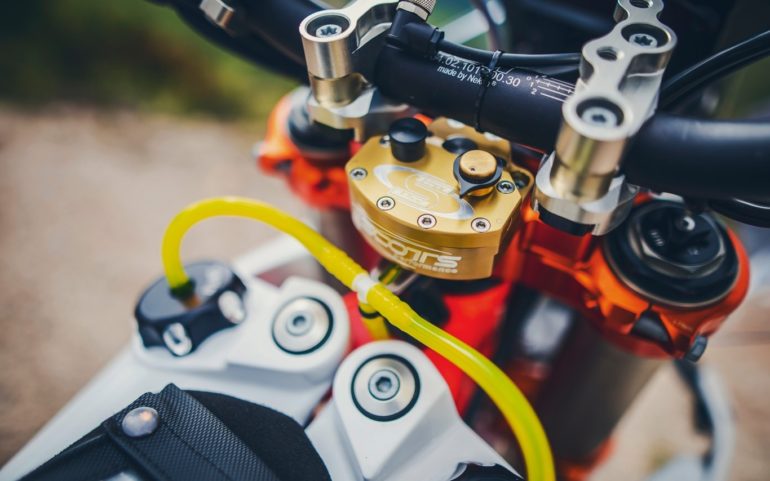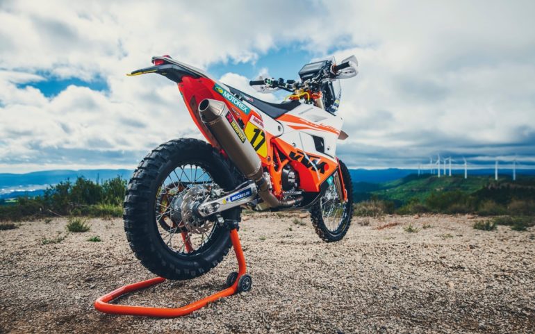El motor es el conocido monocilíndrico de cuatro tiempos y 449 centímetros cúbicos con una potencia estimada que ronda los 70 CV, equipado con escapes Akrapovič y radiadores Hinson, para asegurar la fiabilidad.