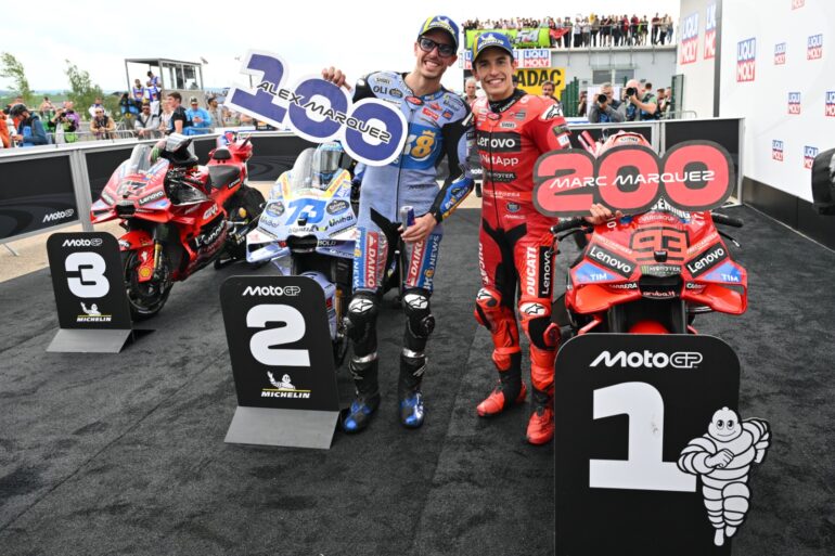 Otro memorable fin de semana, otro fin de semana Márquez. El español bate records que solamente parecen tener destino de únicos. Con la doble victoria de la 11ª Fecha del Gran Premio de Alemania, el español logró 10 triunfos sobre 11 posibles en Sprint, se convirtió en el más ganador en una misma temporada, se impuso por 9ª vez en Sachsering (8 veces con Honda y la primera con Ducati) y superó a Giacomo Agostini con 69 triunfos en la Categoría Reina. Quedó a 20 victorias del récord de Rossi… algo que no deja de ser inalcanzable al ritmo que va Márquez.