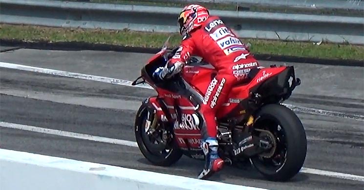 Varios equipos probaron componentes nuevos en las recientes pruebas oficiales en Sepang, pero Ducati sorprendió una vez más con una inédita solución. La marca boloñesa habría ensayado un dispositivo de holeshot, similar al que usan las motos de cross para ayudar a comprimir las suspensiones en la largada.