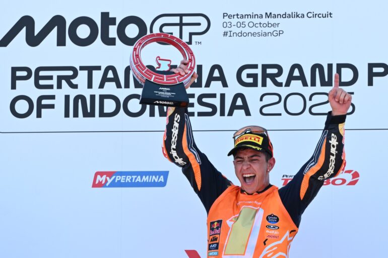 José Antonio Rueda se consagró campeón del mundo de Moto3 luego de ganar en Indonesia. Necesitaba una victoria y la logró para, cuatro fechas antes del final, lograr el título de la categoría menor.
