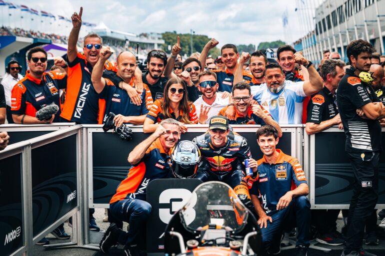 José Antonio Rueda (Red Bull KTM Ajo) ganó y sigue como líder absoluto del campeonato. La sexta victoria del español no fue con bandera de cuadros ya que un incidente forzó la interrupción de la prueba y confirmó las posiciones de la última vuelta como definitivas que dejaron a David Muñoz (Liqui Moly Dynavolt Intact GP) y Valentín Perrone (Red Bull KTM Tech3) cerrando el podio. Perrone consiguió además su primer podio mundialista.