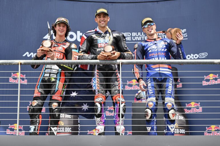 En el reinicio Senna resistió el ataque final de Celestino Vietti (HDR SpeedRS Team), y el italiano, que no pudo finalmente con el australiano, logró su primer podio de la temporada, mientras que Izan Guevara (BLU CRU Pramac Yamaha Moto2) completó el tercer puesto.
